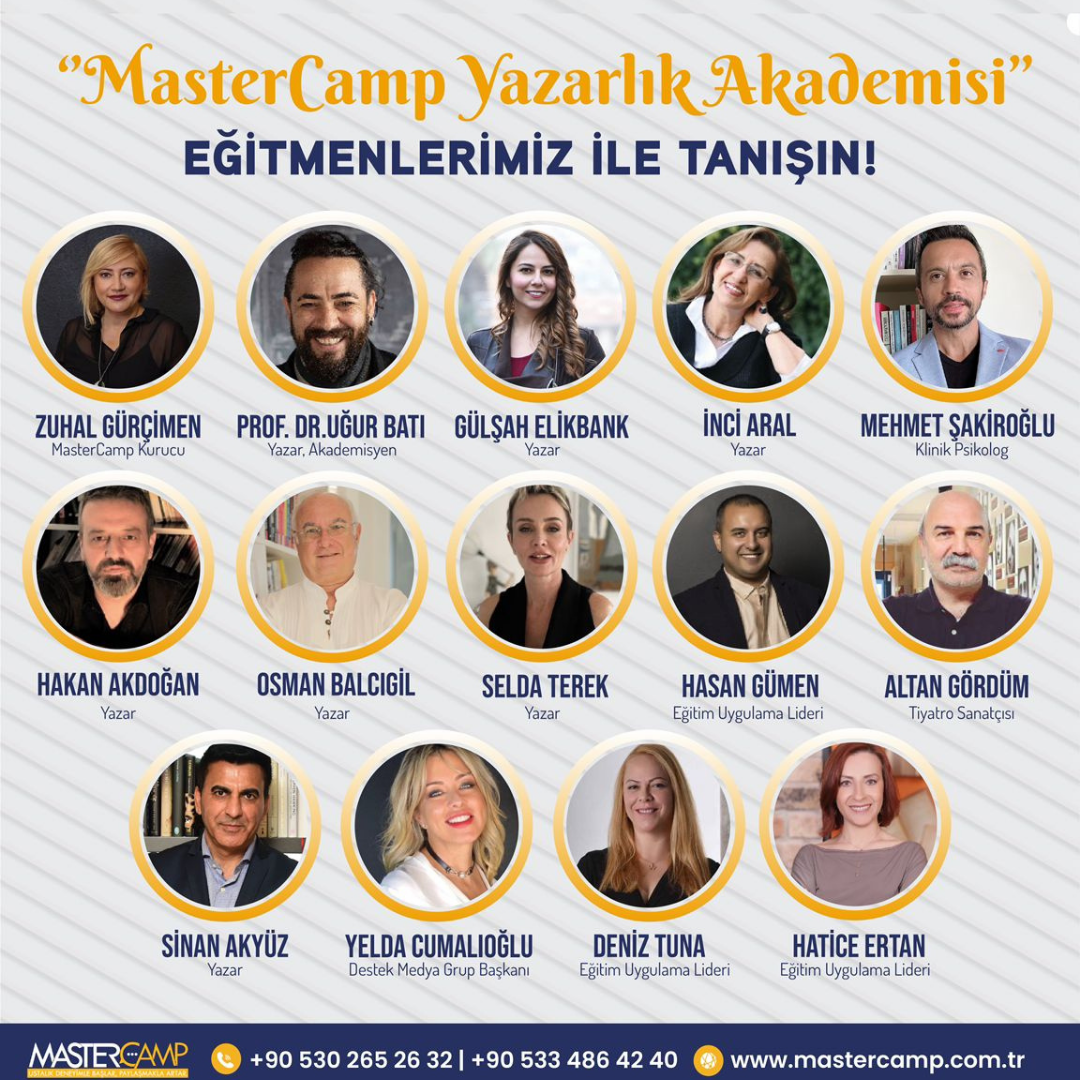 MasterCamp yazarlık okulunda her biri kendi konusunda uzman yazarlarla yazı pratikleri yapacak, eser incelemeleriyle efsanevi yazarların hayal dünyalarına göz atacak ve Türk diline hâkim olmaktan psikolojiyle, insanı anlamaya, felsefeden mitolojiye ve senaryodan hikayeye kadar pek çok farklı alanda yazı çalışmaları yapacaksınız.